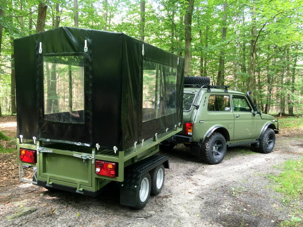 - Osvetlenie: LED osvetlenie prívesu, 13-pinová elektroinštalácia vrátane cúvacieho a hmlového svetla.